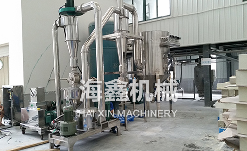 本機組主要用于化工原料的粉碎和混合一體聯動線。化工原料講究的是每一個批次的粉末粒徑分布的均勻性,機組通過旋風器出來的成品料和后端…